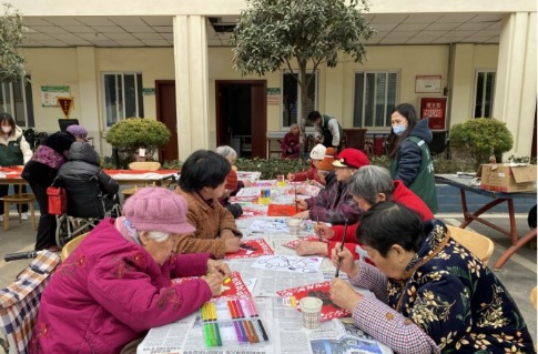 【成都区】1點點成都区伙伴来到成东疗养院与老人们一起写福字。红红的纸上大大的福字,寓意新的一年红红火火。